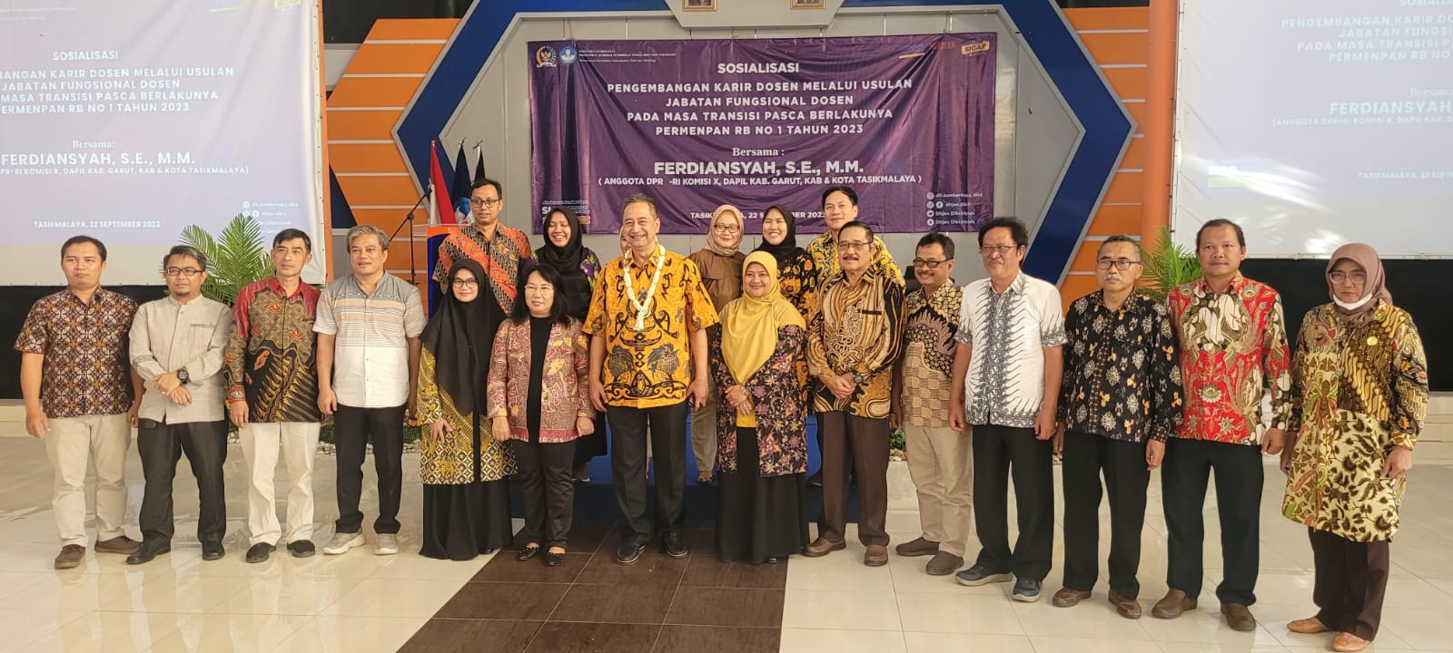 Tasikmalaya – Ferdiansyah S.E, M,M., anggota Komisi X DPR untuk melaksanakan acara sosialisasi kenaikan pangkat dosen. Ia juga memberikan kenang-kenangan berharga bagi lima perguruan tinggi binaan. Perguruan-perguruan tinggi tersebut ialah Universitas Siliwangi (Unsil), Universitas Muhammadiyah Tasikmalaya (Umtas), Sekolah Tinggi Ilmu Administrasi (STIA), Universitas Perjuangan (Unper), dan Politeknik Triguna, Jumat(22/9/2023).